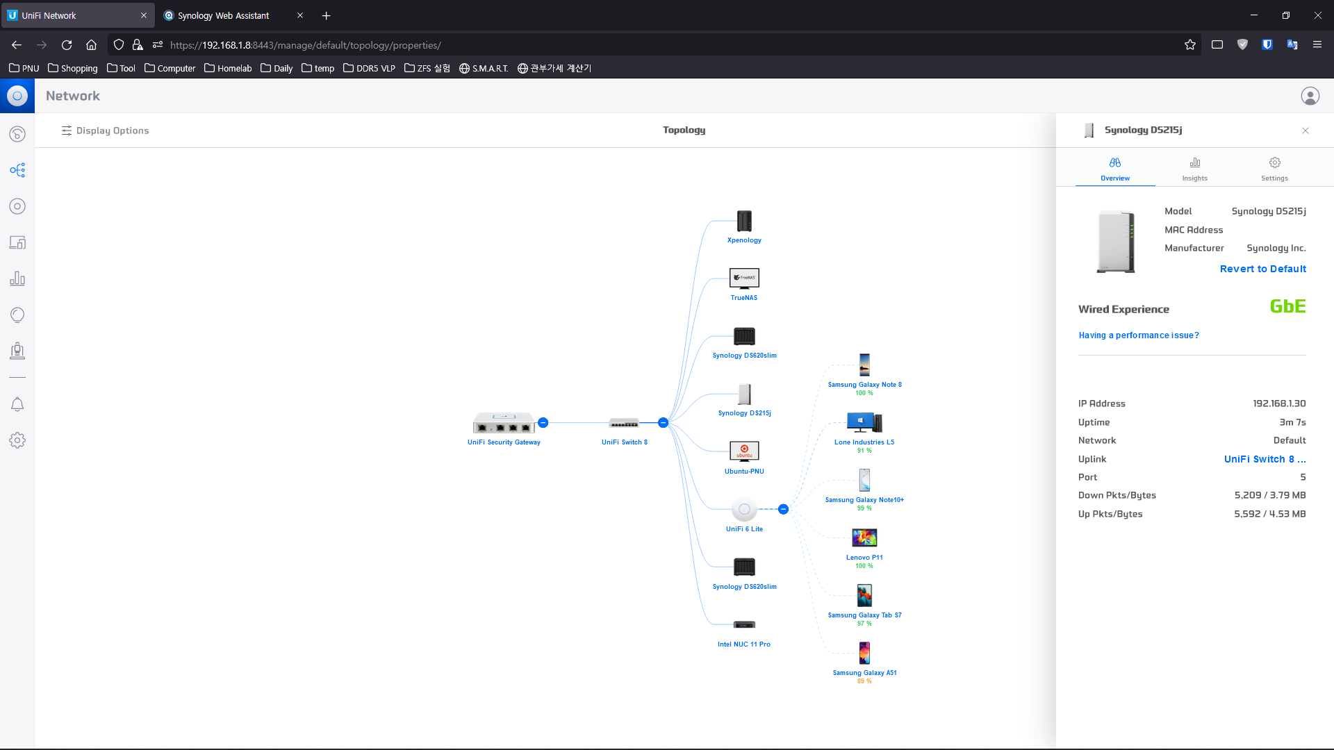 현재 홈랩에는 Synology의 DS620slim이 메인 NAS로 돌아가고 있으며 콜드백업 및 아카이빙 용으로는 중고로 구입한 DS215J가 돌아가고 있다.