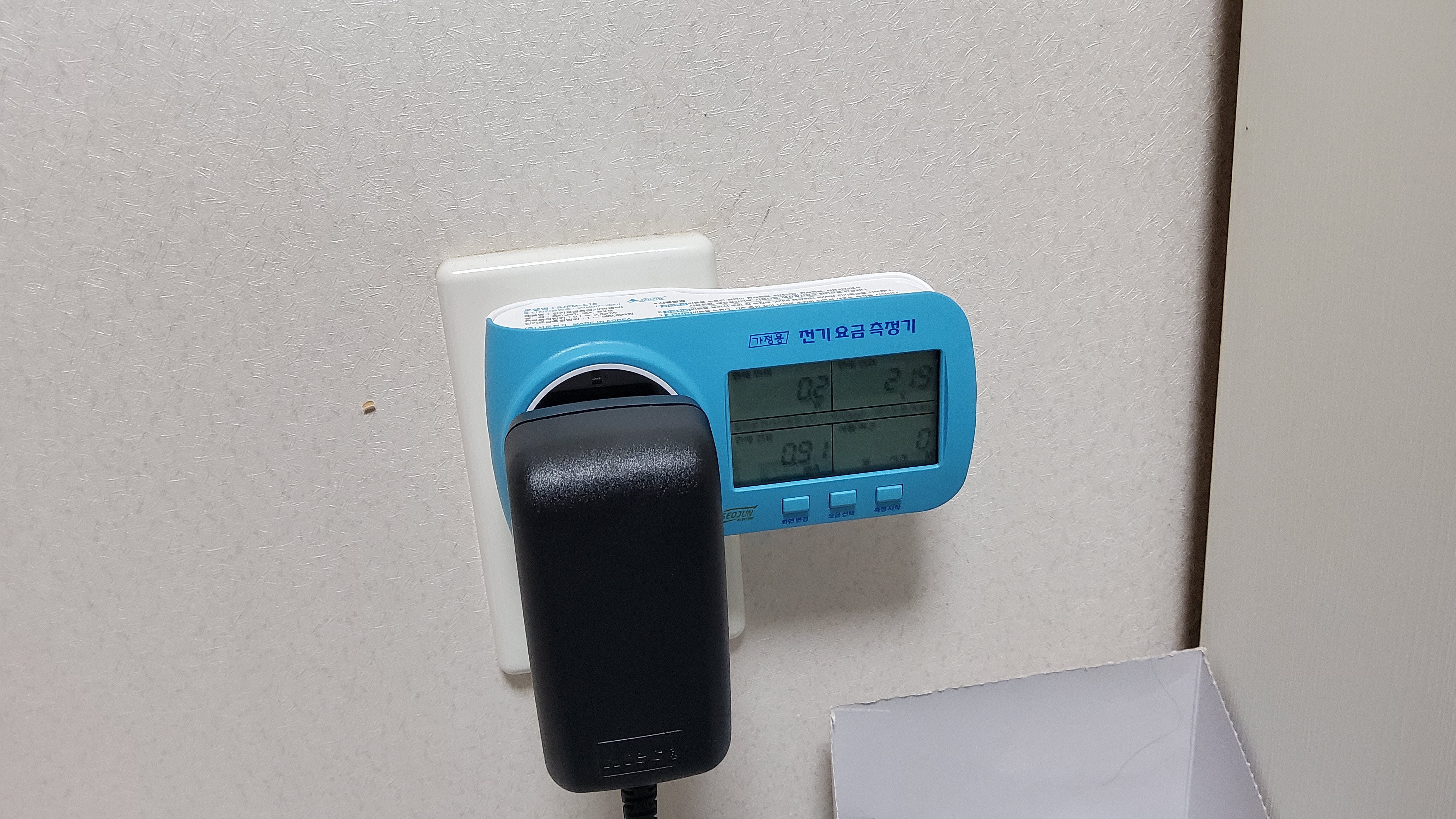 어댑터가 프리볼트인 것을 확인하고 불량 여부를 확인하기 위해 돼지코를 이용해 전원을 인가해준다.