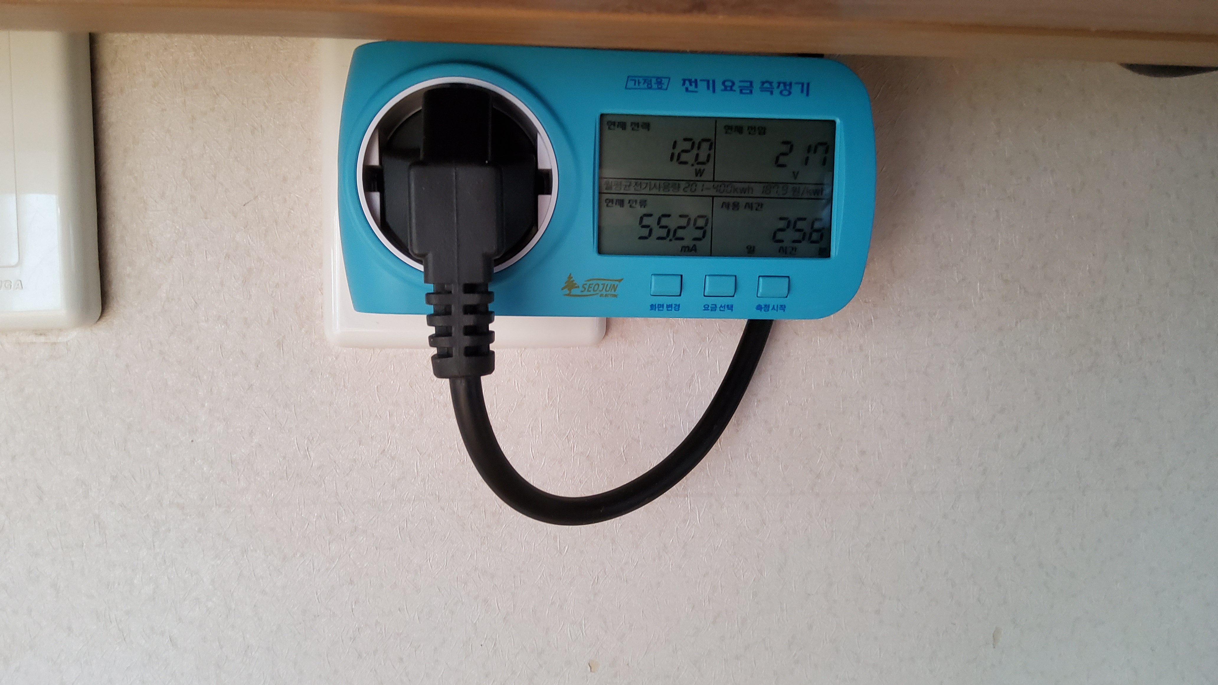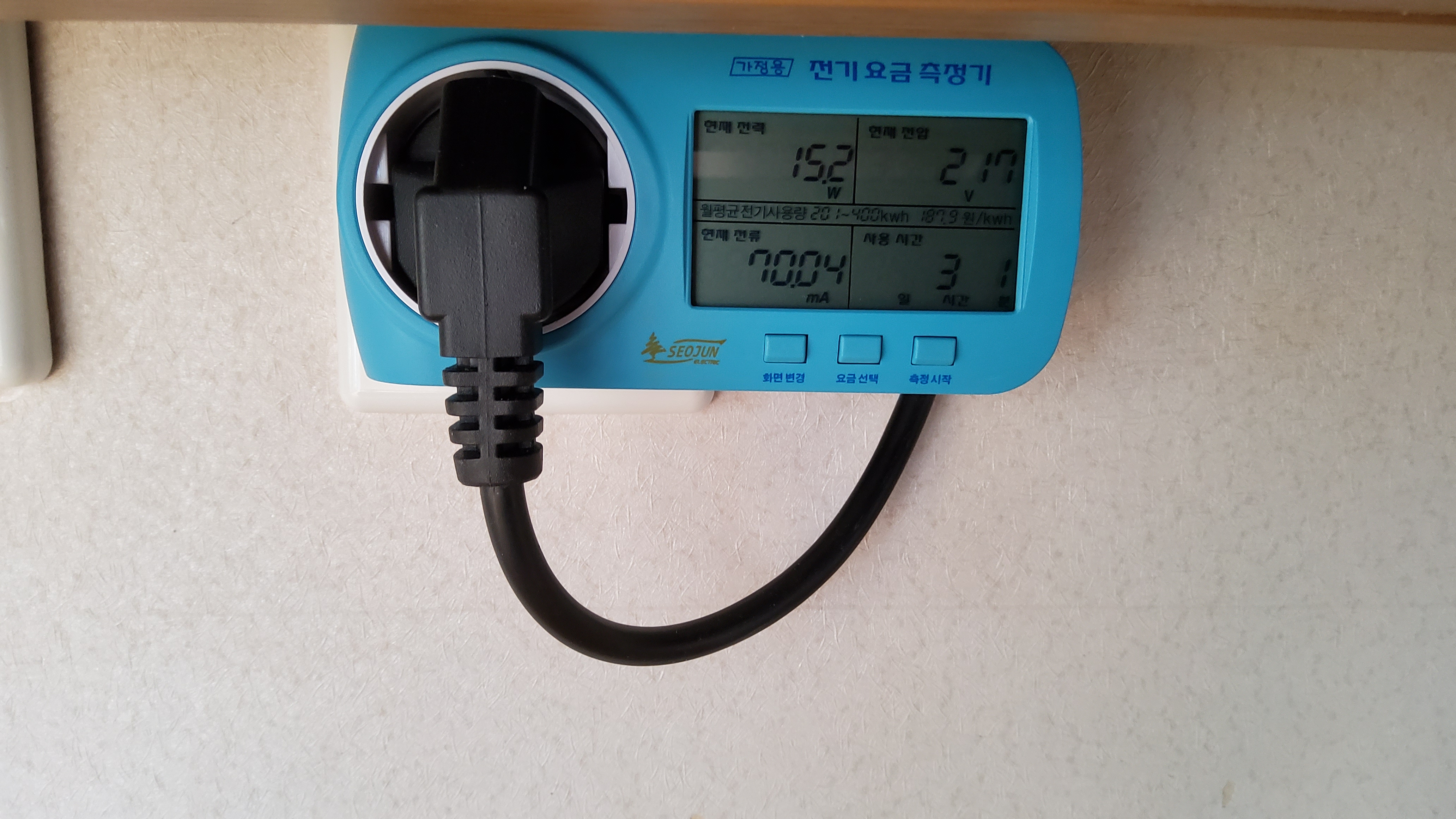 '화면변경' 버튼을 누르면 '요금선택' 버튼으로 설정한 누진세 구간에 맞춰 예상 전기 요금을 측정해주는데 생각해보니 그 사진은 찍지 않았다.